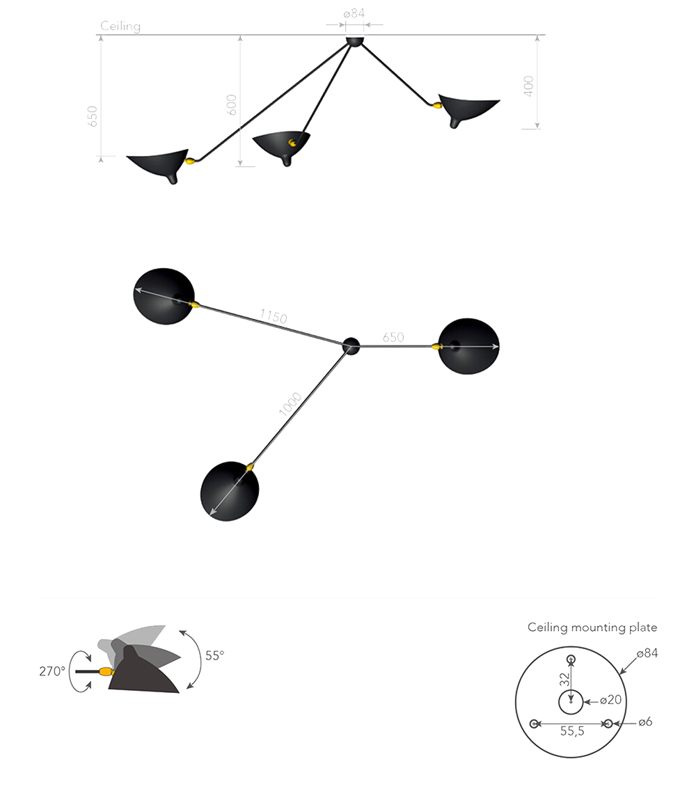 CEILING LAMP SPIDER 3 FIXED ARMS (씨링 램프 스파이더 3 픽스드 암스)