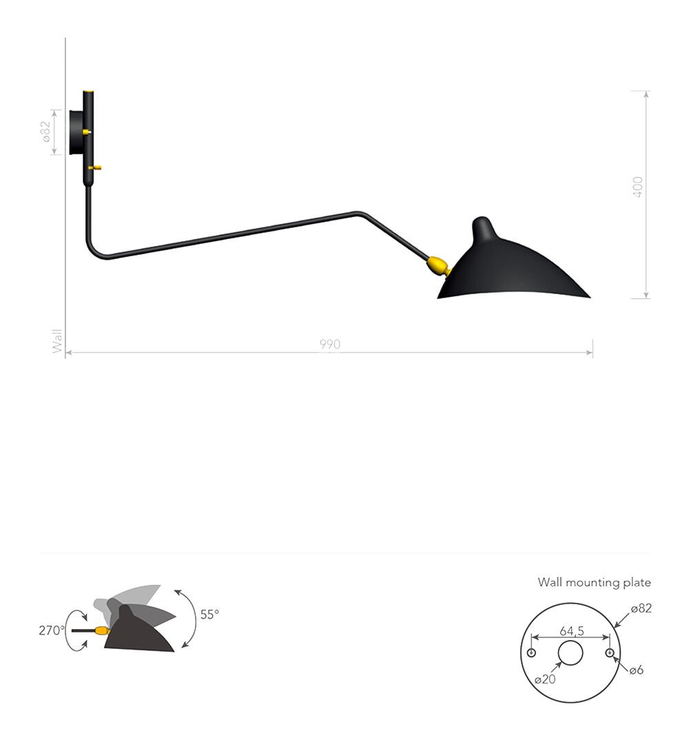 WALL LAMP 1 ROTATING CURVED ARM (월 램프 1 로테이팅 커브드 암)