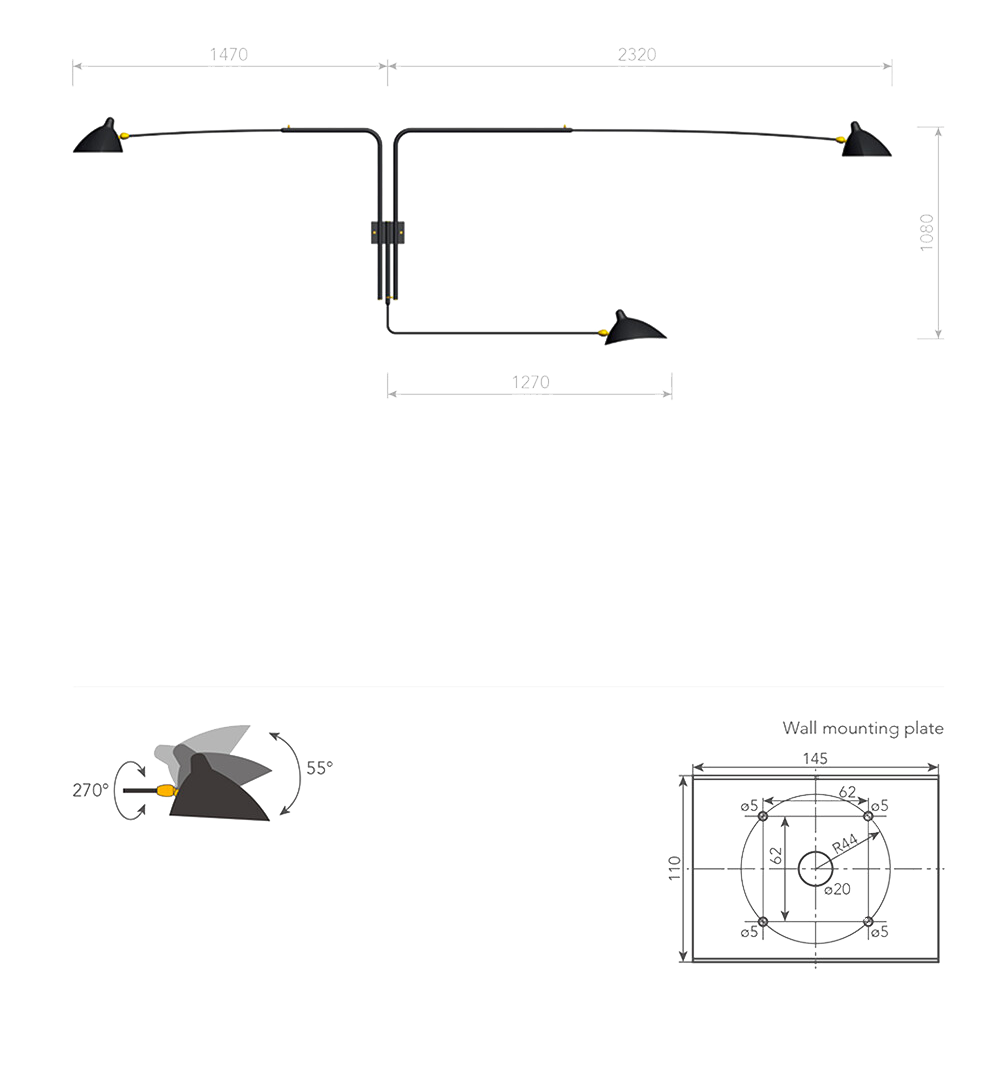 WALL LAMP 3 ROTATING ARMS (월 램프 3 로테이팅 암스)