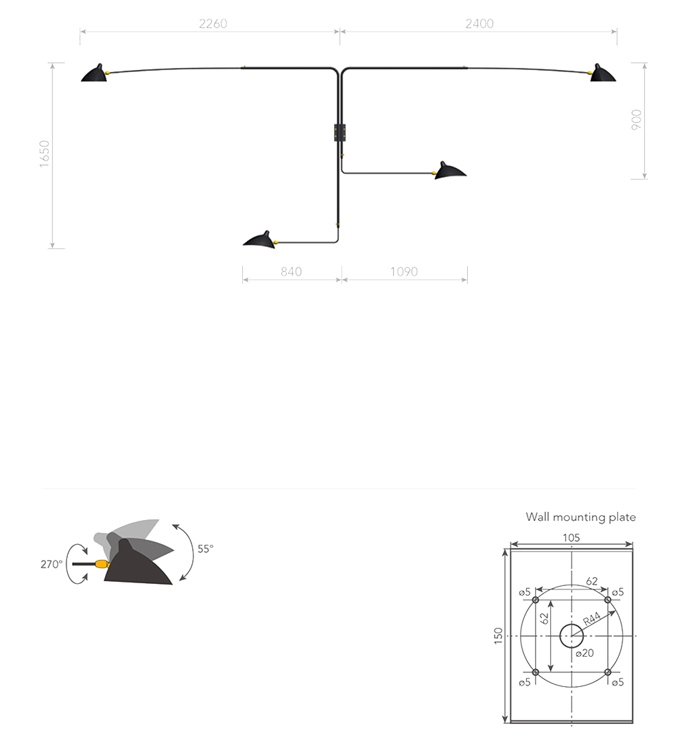 WALL LAMP 4 ROTATING ARMS (월 램프 4 로테이팅 암스)